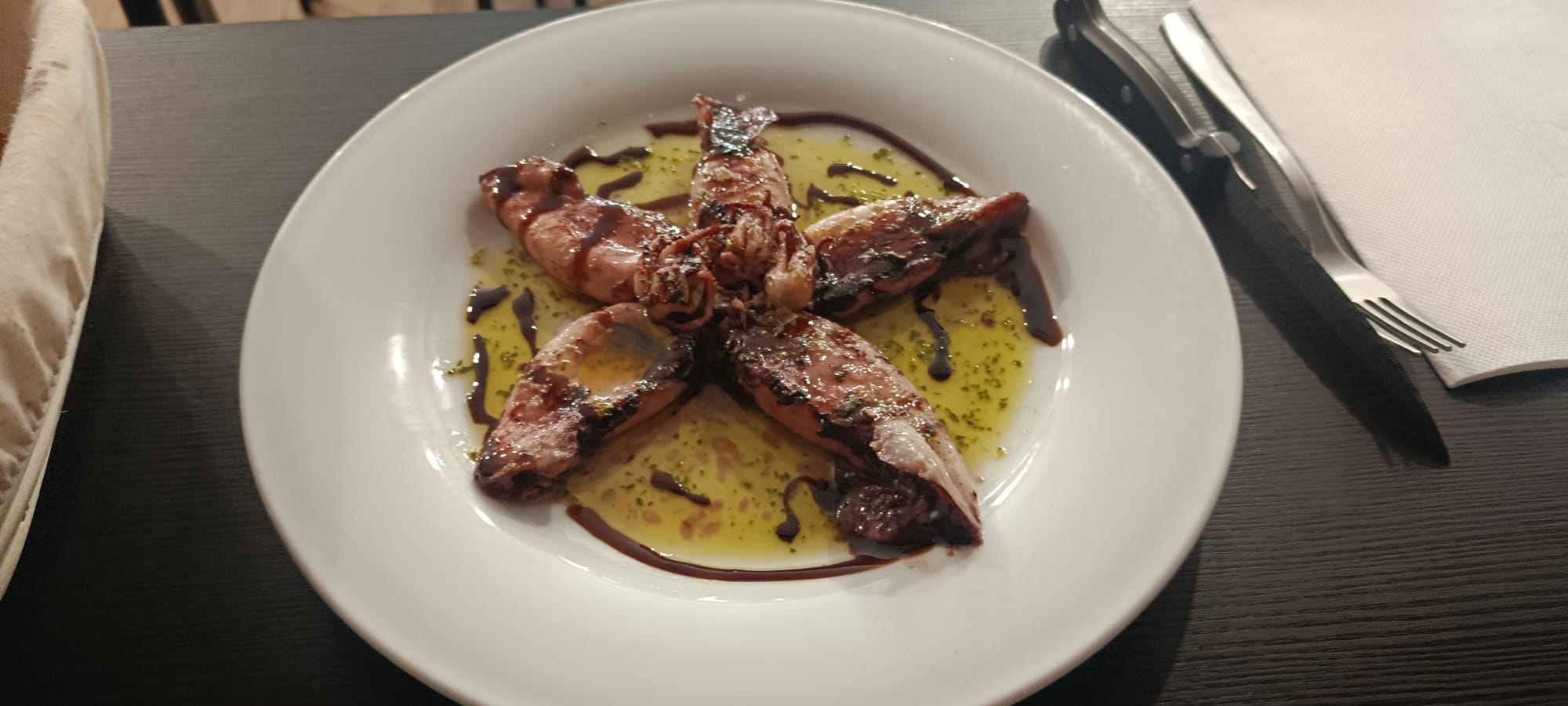 Lechuga, gula, calamares, gambas y crema de módena (2 personas)